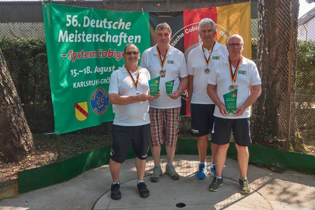 Bei den Senioren I belegte Reiner Bergsmann, der am ersten Tag eine super Leistung zeigte, aber im weiteren Verlauf leider nicht daran anknüpfen konnte am Ende einen beachtlichen 11. Platz. Bertold Großmann und Jürgen Summ zeigten mal wieder ihre Extraklasse und konnten sich für die Finalrunde der besten drei qualifizieren. In dieser Runde hatte Bertold Großmann an einigen Bahnen Pech und erreichte so am Ende einen hervorragenden und hart erkämpften dritten Platz. Jürgen Summ konnte trotz einem Krimi an der letzten Bahn seinen 3 Punkte Vorsprung retten und wurde somit Deutscher Cobigolfmeister 2018.